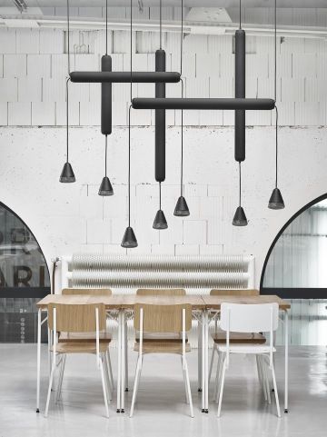 Každý bar a restaurace má svůj vlastní individuální styl. „Při navrhování osvětlení podniku je třeba vzít v úvahu tři věci: koncept, cílovou skupinu a prostor, který využíváte,“ vysvětluje Koldová. Například v malém baru by mohlo být třeba zdůraznit pouze jednotlivé stolky, zatímco ve větším prostoru bude potřeba použít osvětlení pro rozlišení a oddělení různých oblastí. „Do baru bych volila světla Shadows nebo Puro. Obě mohou fungovat samostatně, ale i vytvořit velké seskupení, takzvaný mrak. Shadows nabízejí, kromě atraktivního vzhledu, také úžasnou variabilitu. Světlo se věší na strop pomocí háčků a zauzlovaných oček na textilním kabelu jednotlivých žárovek. Puro je výraznou, minimalistickou variaci atmosférických světel. Vzrušující kontrast vertikál a horizontál levitujících v prostoru jsem umocnila použitím světelných trubic, které svým tvarem připomínají doutníky. Jejich rozptýlené světlo v kombinaci s bodovým vytváří až magickou atmosféru a dynamiku prostor, v nichž je umístěno. Střídání matných a lesklých povrchů, které ve své práci velmi ráda kombinuji, provokuje a rozehrává scénografii s dalšími prvky interiéru.“