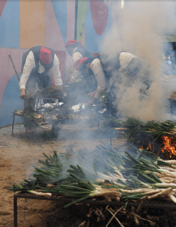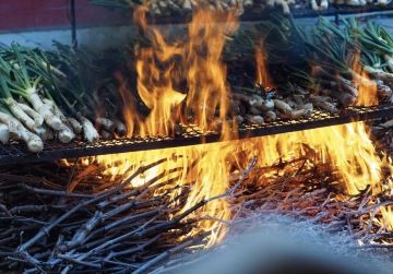 Všichni fascinovaně pozorují plameny a v kouři se míhají červené barretiny. Jako bychom přihlíželi pekelnému tanci čertovských kuchařů. Je to spektakulární podívaná. Jasně zelené svazky cibule, šlehající plameny, sluneční paprsky prodírající se hustým kouřem a atmosféra radostného očekávání. Calçotada je zpět.