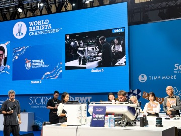 Na veletrhu Host v Miláně to bylo krásně vidět na ploše zhruba čtyř velkých hal. V nich zněl zvuk kávovarů a hlasitých obchodních debat, ale opravdových přelomů bylo málo. Technologie se ladí spíš v detailech. Vzrušení se přesunulo jinam – do segmentu funkčních a RTD nápojů, kde se experimentuje s adaptogeny, minerály a designem. A pak, uprostřed toho všeho, působilo World Barista Championship jako malé UFO. Jiná energie, jiný jazyk, jiná gesta. Šálky voněly po jasmínu a broskvích, ale většina chutnala spíš jako připomínka minulého desetiletí než revoluce.