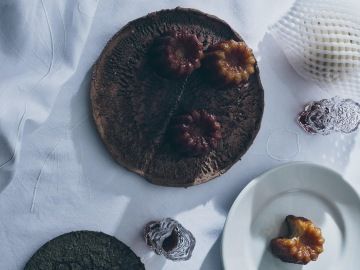 Eliščiny produkty vznikají na základě zakázek a spolupráce s malými či většími klienty. Ačkoliv se de - signérka specializuje na práci se sklem a jeho rytí, otevřená je i jiným materiálům. Novinkou je například spolupráce se zahraničním studiem Successful Supper, pro nějž vznikla kolekce vyšívaných ubrusů a skleněných panákovek. Sněhově bílé ubrusy s jemnou výšivkou se inspirovaly žakárovými vzory, které designérka vždy obdivovala na babiččině povlečení. „V dnešní době už se nic takového nedělá, protože je to pracné a drahé. Mrzí mě to a chtěla jsem na tuto tvorbu navázat,“ přibližuje umělkyně. Při vývoji a vý - robě samotného produktu designérka čerpala z období, kdy žila v Brumovicích, malé obci na Moravě, která je proslulá výrobou krojů. Zde se umělkyně naučila obsluhovat stroj na vyšívání krojů a o pár let pozdě - ji na tuto zkušenost navázala stáží na vysoké škole v ateliéru designu textilu, kde se ten samý stroj naučila programovat. Druhým produktem té samé spolupráce jsou skleněné panákovky Foresters, které vypadají jako dřevěný pahýlek. Původ jejich zjevu pramení z dřevěného předmětu, který si Eliška přivezla z přechodu Pyrenejí; ten absolvovala letos v létě. Název produktu pochází z knihy Jana Vrby Lesáci, která popisuje putování myslivce českou krajinou.
