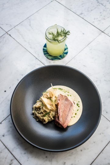 Co se týče samotných pokrmů, většinu z nich najdete na stálém menu swimu. To aby každý mohl do podniku zavítat a danou kombinaci na vlastní kůži vyzkoušet. „Chtěl bych lidem ukázat, že to opravdu jde. Že lze i v každodenním provozu dbát na původ surovin a maximalizovat jejich využití, nevytvářet zbytečný odpad. Proto například v jednom pokrmu mám kedlubnové zelí a ze zbylých slupek udělám ještě omáčku. Mým cílem je nepoužívat zeleninu a další suroviny z druhého konce světa. Vím, to dnes říká kde kdo a už je to takové klišé, ale málokdo to opravdu dodržuje. Já nakupuju zeleninu v holešovické tržnici a pro maso si jezdím k farmářům. K většině surovin lze najít plnohodnotné lokální alternativy,“ uzavírá Matyáš.