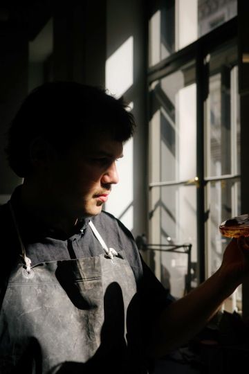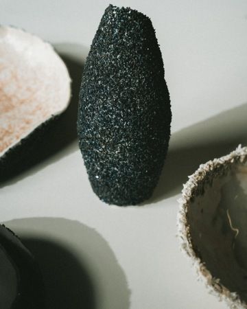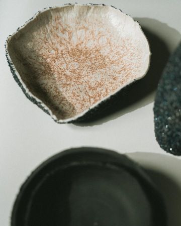 A u gastronomie zůstal Ivo i při výběru tématu diplomové práce. Nechal se inspirovat kuchařskými technikami a vznikl tak projekt „Cooking the craft”. Designér na něm spolupracoval s Centrem vzdělávání a inovací, experimentální platformou UM, a Františkem Skopcem, kreativním šéfkuchařem Ambiente. Vydal se na dosti spletitou cestu technologického experimentu, během něhož se snažil převést techniky vaření do zpracování materiálu; při výrobě nádobí využíval podobné principy jako při vaření. Více než půl roku tak kombinoval různé materiály a zkoušel postupy, které neměl ověřené a které se mu často nedařily: „Byla to intenzivní, skoro každodenní práce, domů jsem se chodil jen vyspat a osprchovat. Jeden z postupů mi stále nevycházel. Asi až po třech měsících jsem se rozhodl zamířit trochu jinam,“ směje se dnes Ivo. Kolekce nádobí, která díky experimentálnímu přístupu vznikla, stojí na pomezí uměleckého objektu a funkčního předmětu: „Nádobí v této fázi funguje spíše pro formát pop-upu, nejde o produktovou kolekci k dennímu použití. Aby se z něj stala série o více kusech, na to bych potřeboval další dva roky.“ A spolupráce Iva s kreativními kuchaři Ambiente ještě nekončí – ve druhé polovině září proběhne v prostorách Technologického centra UMPRUM již zmíněný společný pop-up: tři večeře o šesti chodech pro deset lidí, kteří budou moct nahlédnout i do „kuchyně“ designéra, kde unikátní nádobí vznikalo.