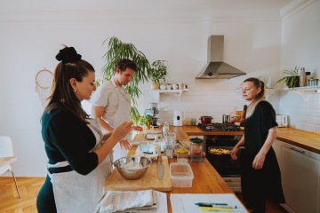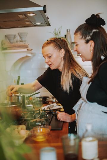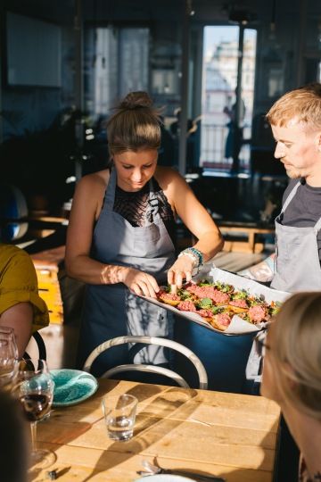 Váhala jsem, jestli to nebude velký zásah do soukromí, ale zároveň mi dávalo smysl pozvat kurzisty přímo k nám. Rozhodla jsem se totiž předávat kuchařské know-how, které je aplikovatelné v domácí kuchyni, a ta naše slouží jako výborný příklad. V neformálním prostředí se navíc lidé okamžitě uvolní, a tak vzniká příjemná bezpečná atmosféra.
