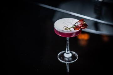 Velvet Revolution je můj pohled na klasický Clover Club, zasazený do prostoru Bar and Books Národní, který stojí na místě bývalé Rotisserie. Každá složka drinku má svůj význam. Švestková redukce odkazuje na českou kuchyni, cordial z motýlího čaje a třešní připomíná barvu plastik Davida Černého, citronová šťáva evokuje věneček ze Slavie, pěnu vytváří místo bílku foamer a krajka ze švestkové kůže vše spojuje do čistého detailu.