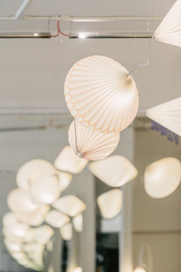 Zásadním krokem při tvorbě každého svítidla je moment, kdy designérka vymýšlí střih: vezme kus papíru a skládá ho tak dlouho, až je s výsledným objektem spokojená, potom ho zakreslí. Střihů má skladem několik, a aby s nimi v případě potřeby mohla dále pracovat, jsou vymyšleny tak, aby se daly nejrůzněji přizpůsobovat.