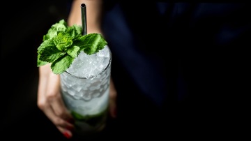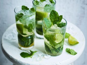 Podrtíme snítky máty, cukr a limetkovou šťávu. Přidáme šplouch sodovky a naplníme sklenici drceným ledem. Nadávkujeme rum a navrch doplníme sodovkou. Ozdobíme snítkou máty a plátkem citronu. Servírujeme s brčkem.