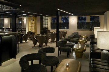 Návštěvníka po příchodu obklopí příjemný tmavý interiér navržený v Design Research Studio značky Tom Dixon, inspirovaný současnými japonskými a singapurskými trendy. Stěžejní jsou odstíny zemité hnědé barvy, přírodní materiály, jako je opalované dřevo, a výjimečné designové prvky jako stoly vyřezávané z masivních mramorových bloků a kontrastní zlaté doplňky. Pozornost na první pohled upoutá zejména samotný bar s deskou z leštěného černého mramoru.