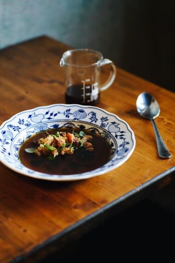Pokaždé chci, aby se v něm od začátku do konce střídaly různé textury a chutě. Jídlo musí mít vývoj a nesmí působit jednotvárně, ačkoli se ve finále promění v harmonický celek, který dokáže vyvolávat emoce a vzpomínky. S každým soustem bys měla prožít něco nového, aniž by ses cítila přehlcená. Proto obvykle hodnotím jídlo až po čtvrté lžíci a hlídám si, aby nebylo moc intenzivní. Mimo to si ulítávám na čerstvých bylinkách a na kyselém – po ruce mám vždycky ocet.