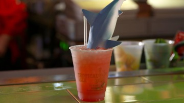 Na závěr něco na odlehčení. Bar Tropical Isle najdete v New Orleans na slavné Bourbon Street a je proslaven především tímto drinkem. Už po vstupu dovnitř poznáte, že zde jsou žraloky opravdu fascinováni. Ačkoli se nejedná o žádnou mixologickou lahůdku, koktejl vás jednoznačně pobaví. Jde o jednoduchou kombinaci vodky, sour mixu a sody, která je podávána na drceném ledu v kelímku spolu s brčkem. Drink má lehce žlutou barvu a je dokončen přímo před vámi. Za hlasitého cinkání zvonu, pískání píšťalky a výkřiků typu: „Watch out! Shark Attack!“ vám barman do drinku strčí plastového žraloka, který v sobě nese slušnou dávku grenadiny. Ostatně, koukněte na YouTube. Není pochyb, že vám to celé bude připadat jako scéna vystřižená z filmu Čelisti. Na internetu se objevují různé verze, kdy bázi tvoří rum, tequila nebo jakýkoliv světlý destilát. Někdy se objevuje i s trochou Blue Curacao, což přidá drinku na dramatičnosti.