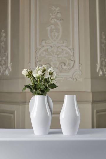 Porcelánu se Karolína věnovala i ve svojí bakalářské práci. Zadání znělo „Karlovy Vary“ a designérka tehdy navrhla sérii velkoobjemových váz s názvem Pupp. Její původní představa, že budou vyrobeny z karlovarského porcelánu, nevyšla, ale poštěstila se jí spolupráce s porcelánkou Rudolf Kämpf a vznikly vázy menších rozměrů. V době covidu to pro Karolínu bylo velké vítězství, bála se totiž, že svou práci bude moct prezentovat jen jako vybroušený 3D tisk.