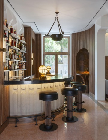 Autorem interiéru je irský designér Bryan O’Sullivan, který byl nedávno jmenován jedním z top 100 návrhářů interiérů House & Garden. Hlavní část podniku je rozdělena do tří zón, které spojuje půlměsícový mramorový bar a útulný krb. Klíčovými prvky interiéru jsou oblé tvary a kvalitní materiály jemných a přírodních odstínů. Podnik se inspiruje historií pěchotního pluku britské armády Grenadiers, jejichž stáje byly původně umístěny v areálu Wilton Place, kde je hotel postaven. Jednu z dominant tohoto útulného interiéru představuje nádherné ořechové dřevo, které pochází z 300 let starého stromu pokáceného v panství Fulbeck Estate v Lincolnshire během velké bouře v roce 2007. Jedná se o mimořádně komplikovanou a krásnou strukturu, která prostoru dodává nádech významnosti a poskytuje nenucený pohled do historie. Příběh stromu je romanticky vyobrazen i v omítkovém vlysu nad dřevěným obkladem.