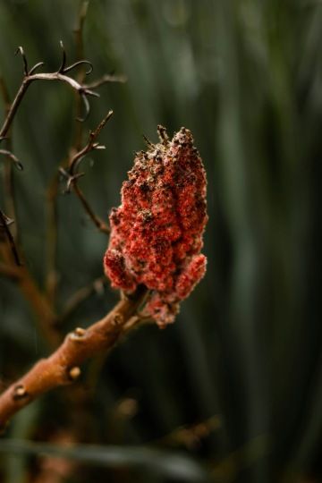 Sumac se vyrábí z rubínových plodů rostliny sumach, které se sbírají těsně před dozráním. Poté se suší na slunci a melou na hrubý prášek. Sumac – nebo také škumpa – patří do stejné rodiny jako kešu a pistácie a obvykle se vyskytuje v subtropických oblastech Středomoří, v severní Africe a Severní Americe. Existuje více než 250 různých odrůd a téměř všechny mají červené bobule. Výjimkou je jedna jedovatá odrůda, tu však poznáte jednoduše podle bílých bobulí.