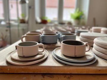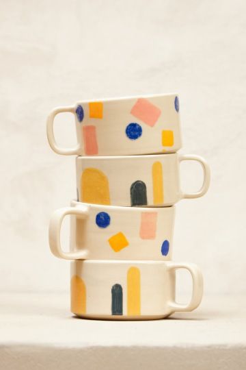 V portfoliu Veroniky Pikrtové najdeme kávové servisy, šálky na espresso, závěsné květináče i dlaždice. Její výrobky často zdobí ručně malované barevné akcenty – svěží, většinou minimalistické.