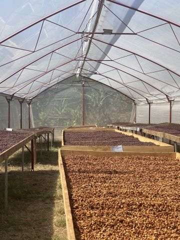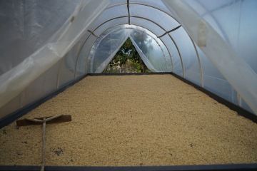 Jakmile farmáři do závodu Keramo přinesou třešně, dochází k jejich kontrole. Hodnotí se hlavně jejich zralost, protože množství cukrů má přímý vliv na fermentaci i chuť kávy. Třešně se následně ponoří do čisté vody, kde se omyjí. Zároveň se tak oddělí první defektní třešně, které kvůli odlišné hustotě zůstanou plavat na hladině. Tuto metodu si můžete doma sami vyzkoušet například s borůvkami. Následně se třešně rozprostřou na africké postele. Jedná se o bytelné konstrukce ze dřeva, mezi nimiž je natažena síť, která umožní, aby kolem třešní rovnoměrně proudil vzduch. Zde dochází k fermentaci a postupnému sesychání třešní. Mezi těmito dvěma aspekty se musí najít ideální poměr, aby káva získala správný chuťový profil. Většinou tedy schnou 10 až 30 dnů. Ve zmiňovaném závodě Keramo přišli na to, že jejich káva nabízí lepší chuťový profil, když schne 20 až 22 dní. Proto nad africké postele přidali speciální stínicí konstrukce, aby proces zpomalili. Každý den musí třešně několikrát obracet, aby schly rovnoměrně a zabránili vzniku plísní.